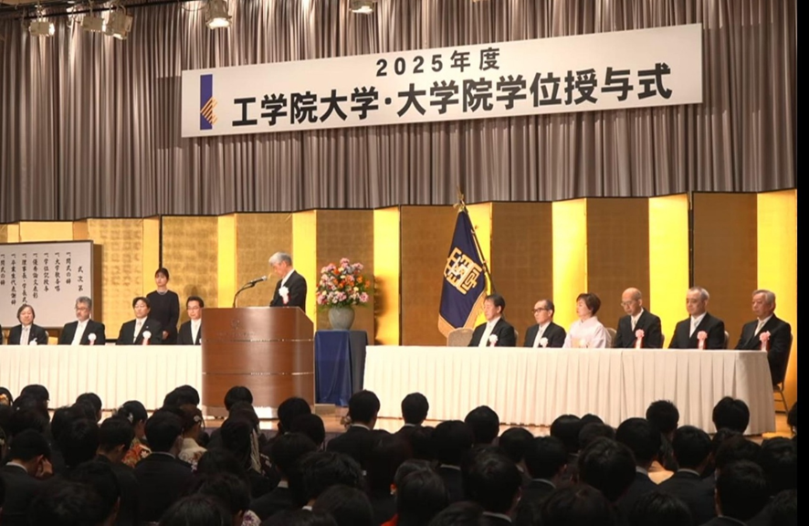 3月19日、京王プラザホテルコンコードボールルームを会場に工学院大学・大学院の学位授与式が挙行されました。2025年度は、学部生1350名、修士・博士課程338名に学位記が授与されました。
